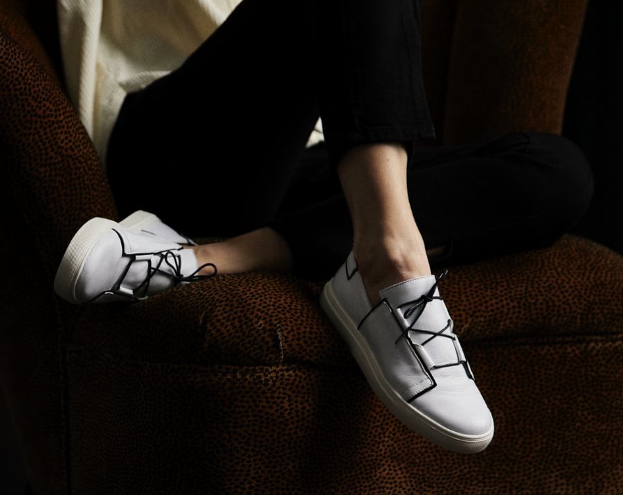 Meet Milly where sneakers and art unite. Her white leather is outlined with black lines drawing eyes to the details of each element of the look, complemented with matching laces in black. Pair these with a cropped dress pant for a striking look!
